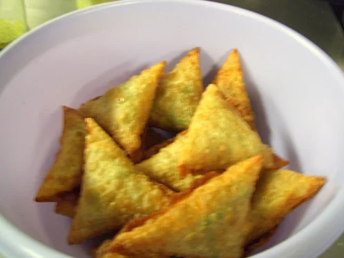 Popüler geleneksel atıştırmalık bir çeşit; sambusas.