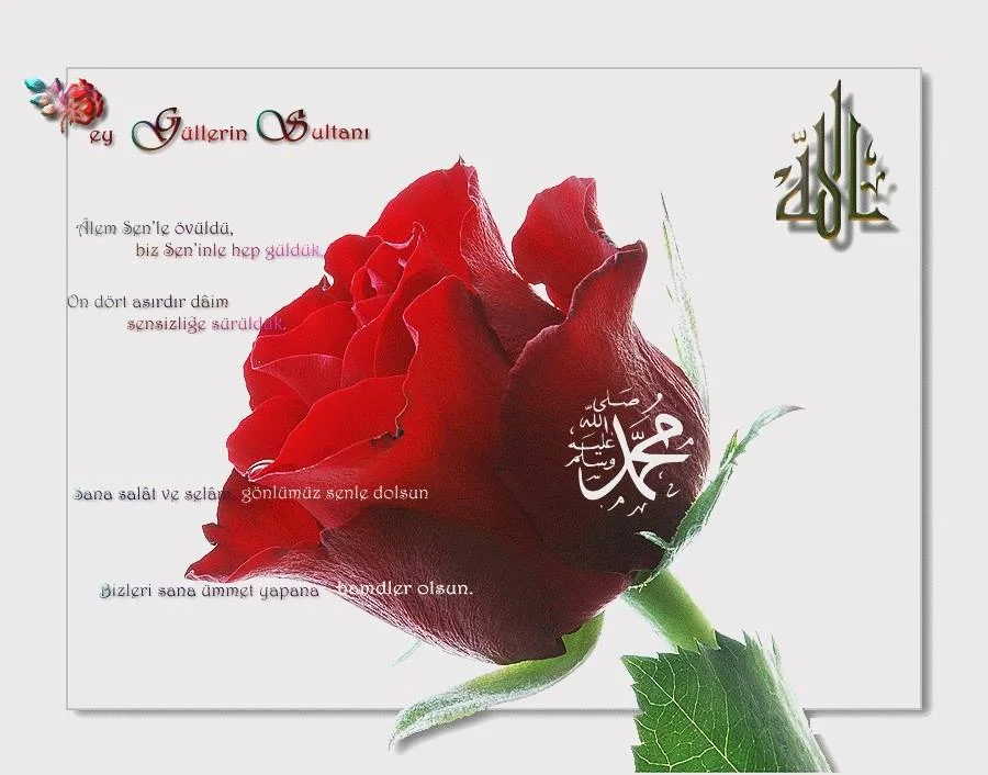 "Resul-ü Zişan Efendimiz (sallALLAHu aleyhi vesellem) buyuruyor: "Benim kokumu duymak isteyen, kırmızı gül koklasın."Güllerin kokusunu aldıkları, insanların en güzeli, o kadar güzeldi ki; kainattaki bütün güzellikleri, 'Cemal' isminden küçücük bir tecelliyle var eden Yüce Mevla; o gül kokuluya 'Habibim' yani 'Çok sevdiğim' diye hitap buyuruyordu.