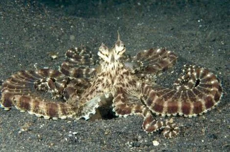 ABD ve Endonezya'dan bilimadamları, aynı sularda yaşayan akraba ahtapot türlerinin soluk renklere bürünerek deniz dibinde kamuflaj yöntemine başvurmasına karşın, taklitçi ahtapotun seçtiği görece daha riskli korunma yönteminin nasıl geliştiğini hayvanın genlerinde aradı.