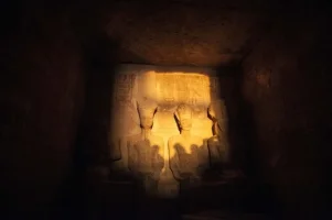 Mısır'ın güneyindeki Asvan kentinde bulunan Ebu Simbel Tapınağı'ndaki Firavun II. Ramses heykeline güneş vurdu.